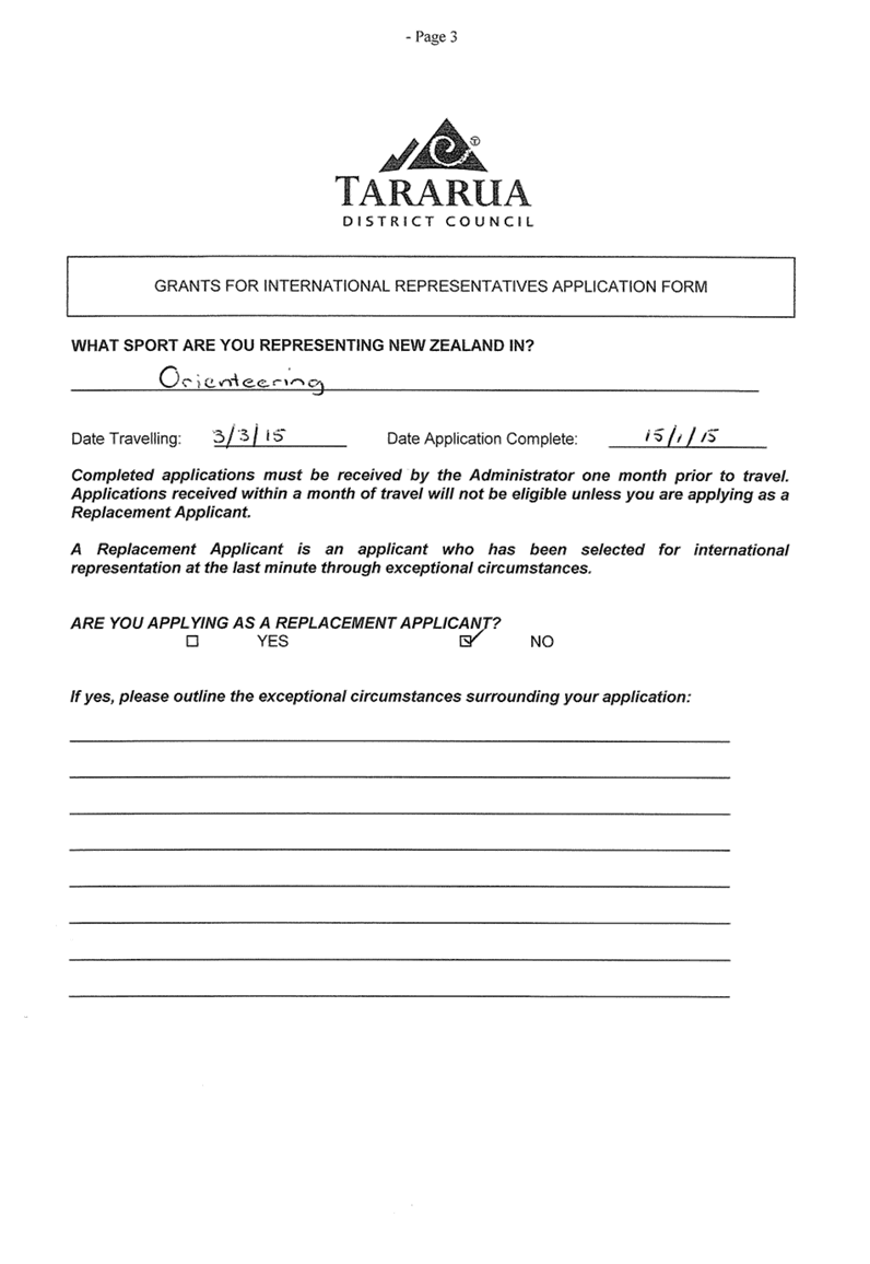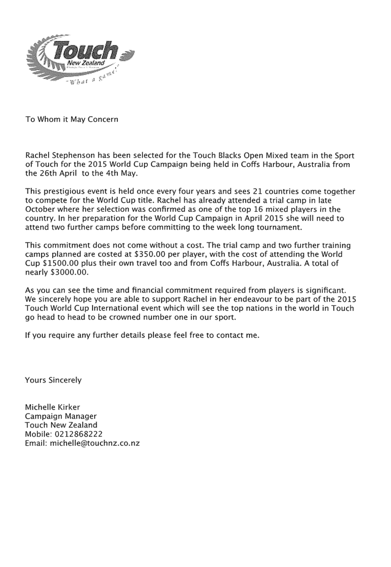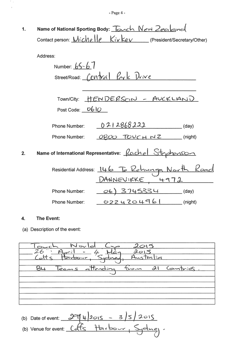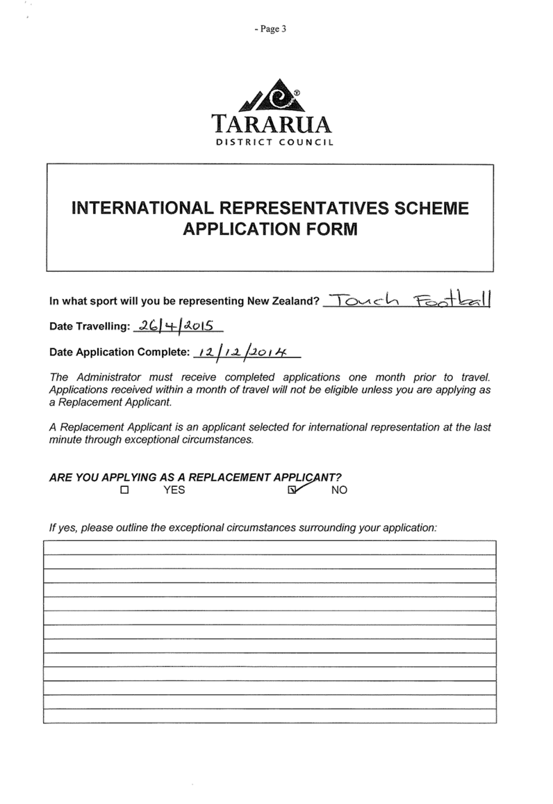 10.1 Grant Application of Rachel Stephenson to the International Representatives Scheme 33