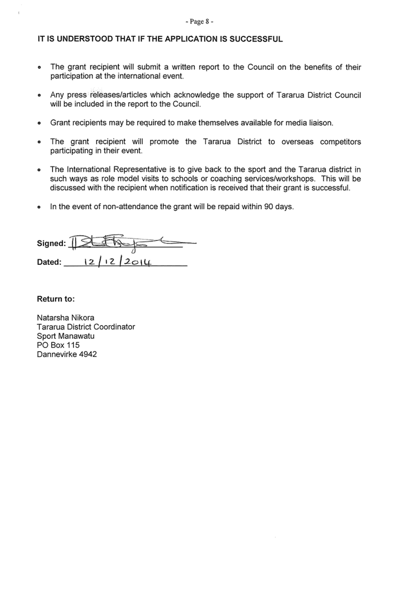 · Sport Manawatu has been in discussion with the Pahiatua Junior Football Club and Manawatu United regarding KiwiSport Fast Fund Applications for in-school football delivery.