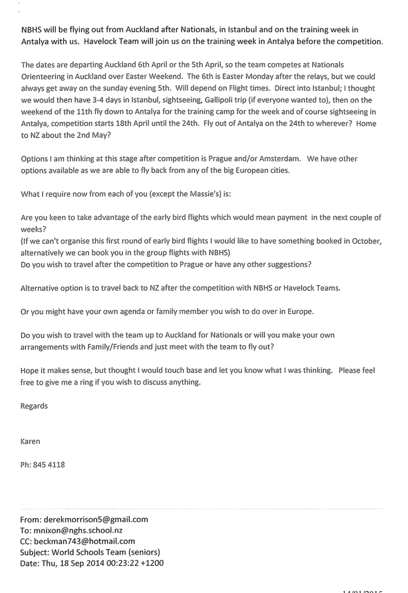 Paddy attended a meeting at Horizons on 14 January 2015. The purpose of the meeting was to start the review the Group Civil Defence Plan.