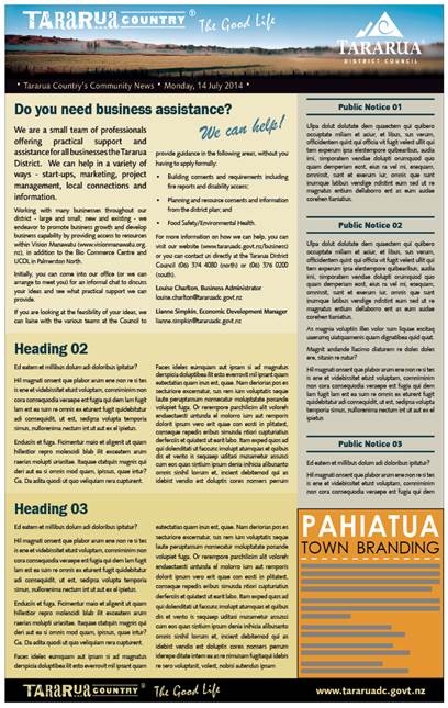 A meeting of the Tararua District Council will be held in the Tararua Business Hub, 40 Denmark Street, Dannevirke on Wednesday 28 January 2015 commencing at 1.00 pm.