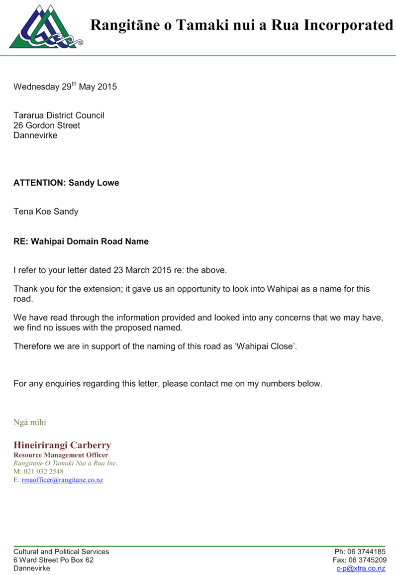 10.1 Proposed Name of Wahipai Close 45