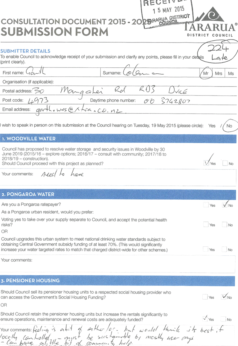 10.7 Draft Long Term Plan 2015/2025 Submissions 105