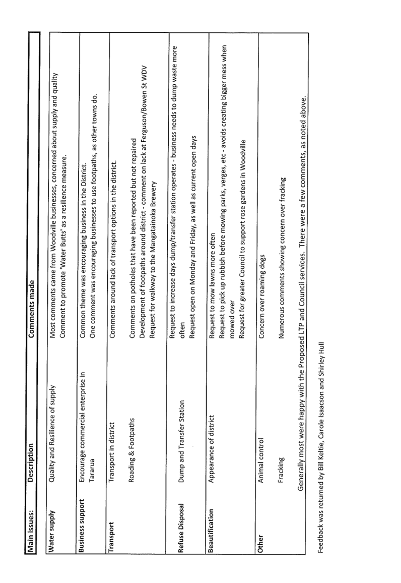 It was noted that the reference in the Woodville Districts’ Vision minutes under the item on the Council’s preferred option for the Woodville Library / Service Centre and i-SITE is misleading. |