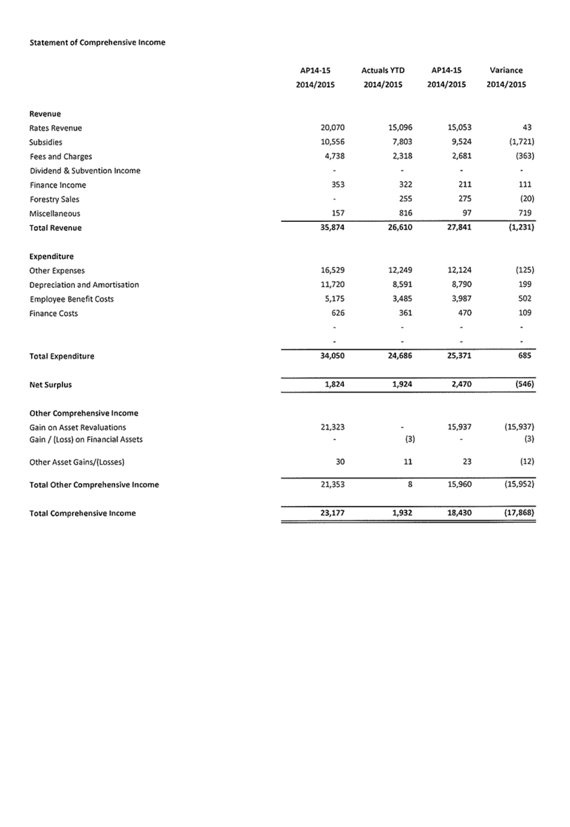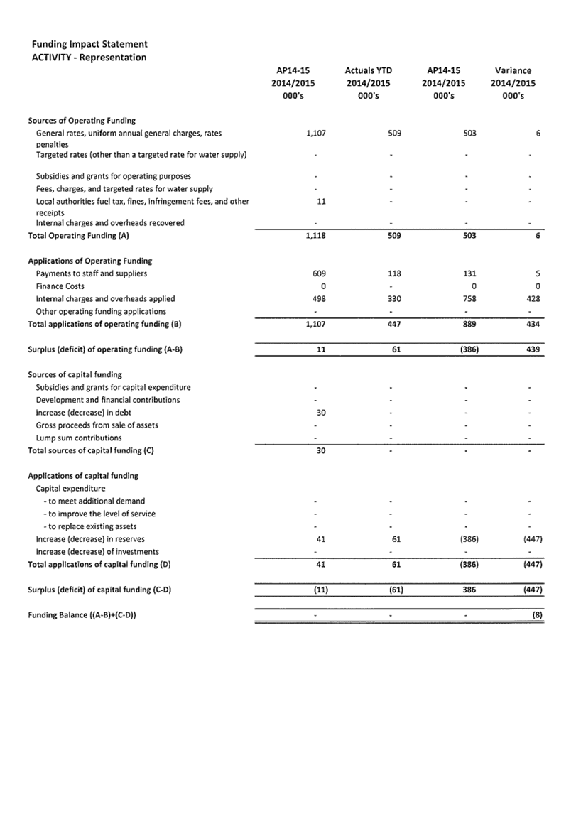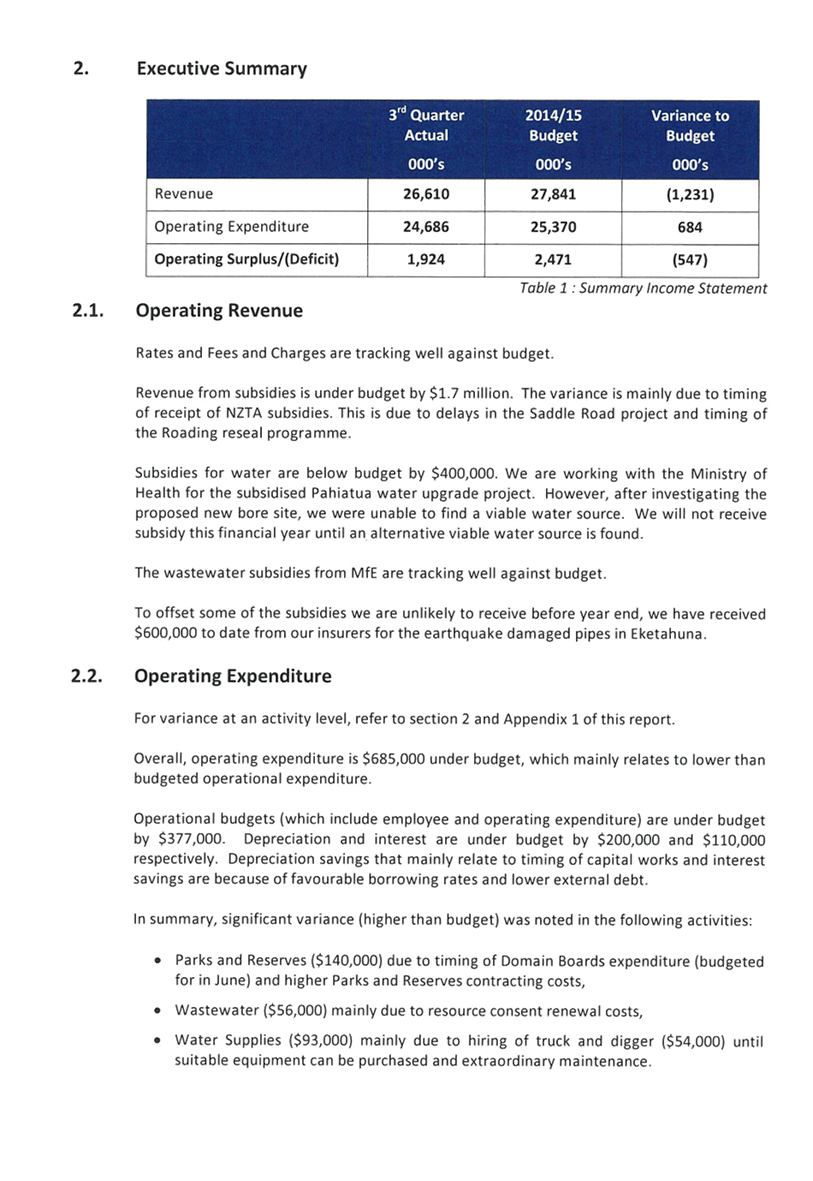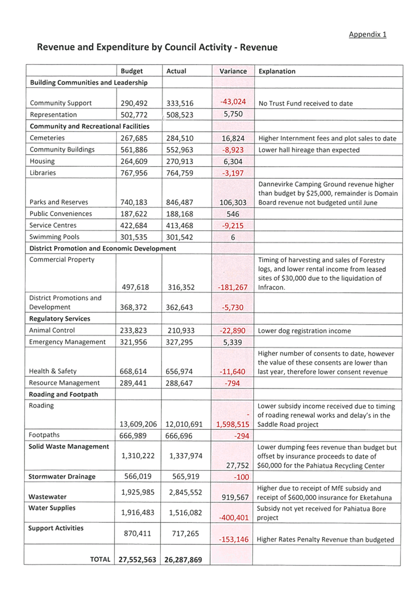 Appendix 1 : Revenue and Expenditure by Council Activity