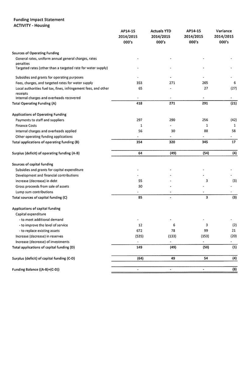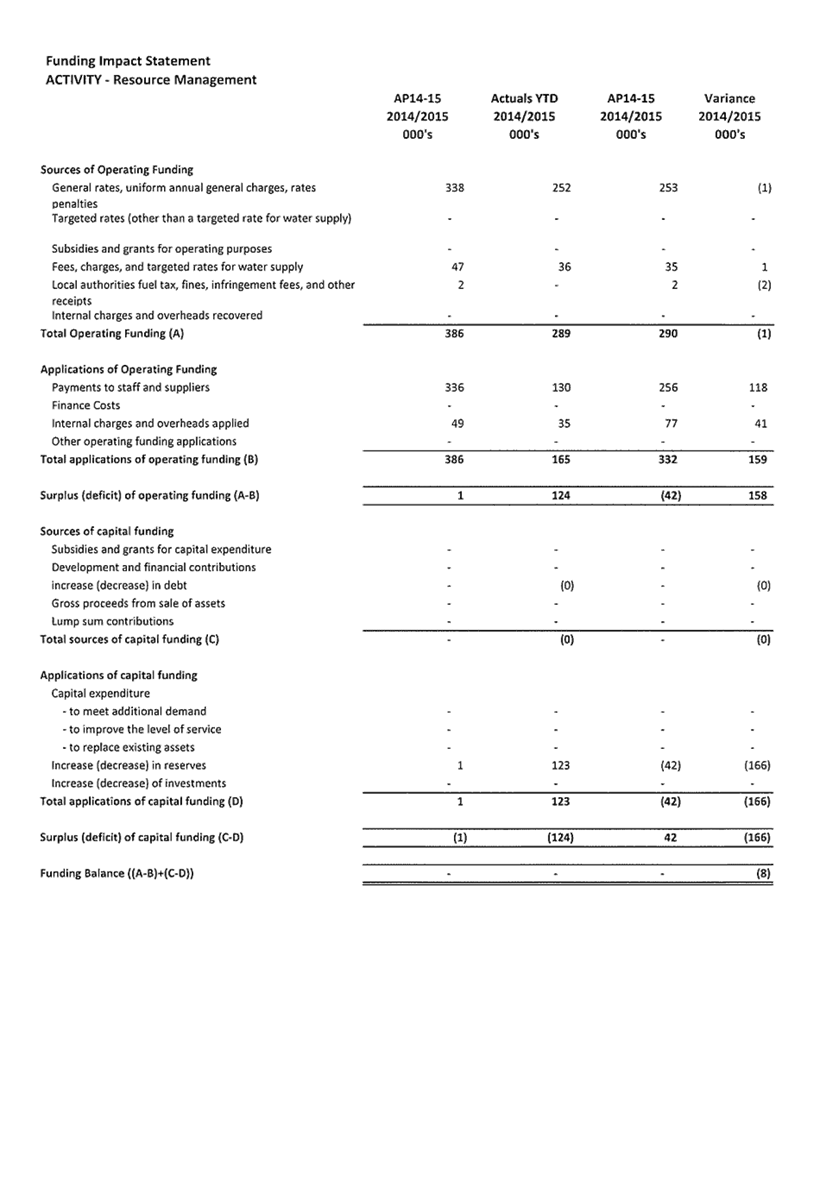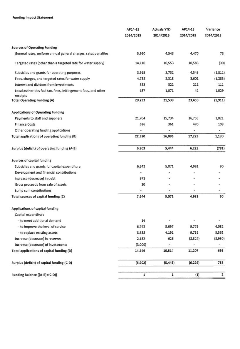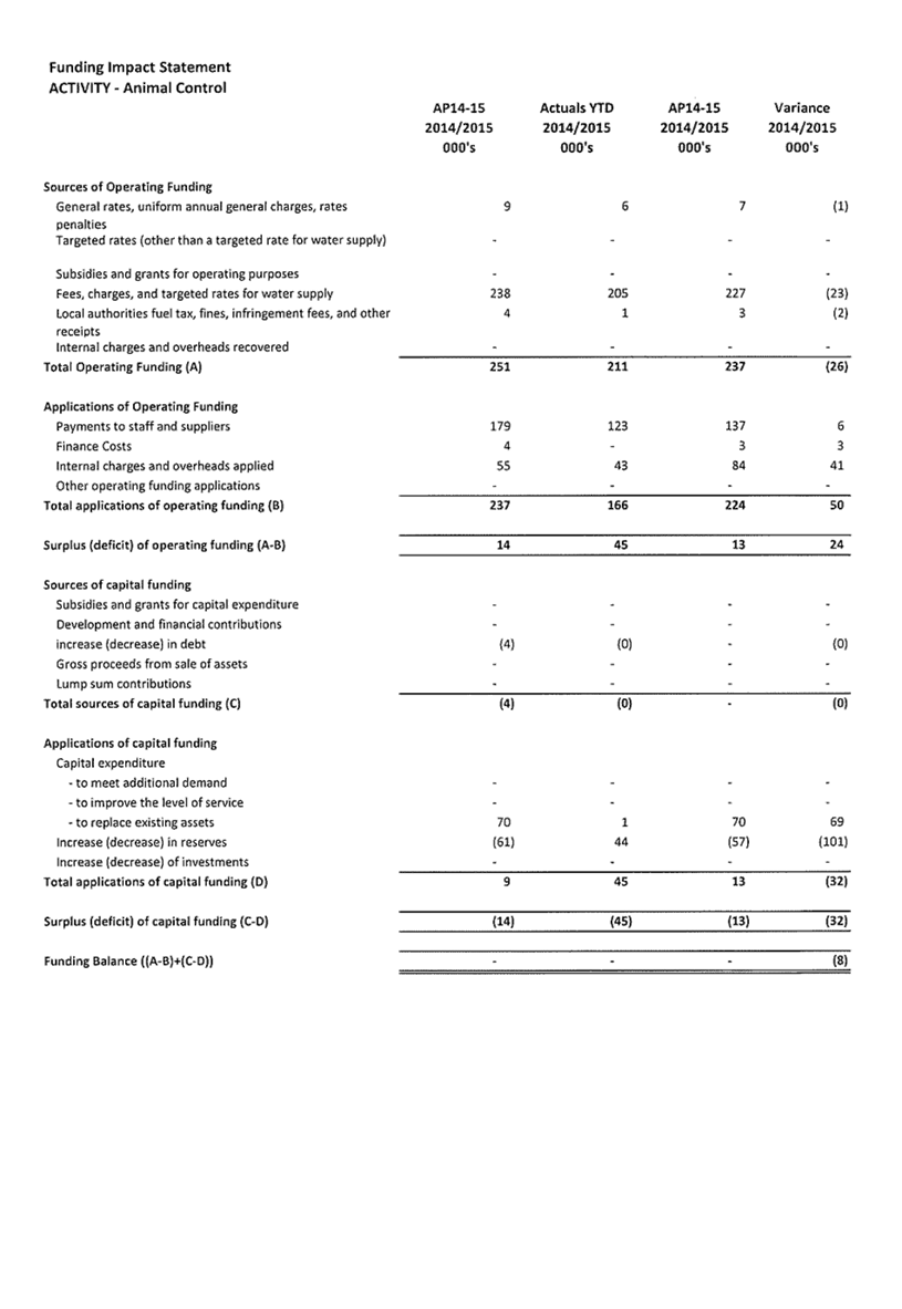 Appendix 1 : Revenue and Expenditure by Council Activity