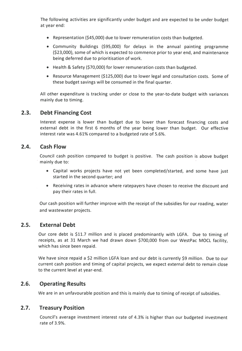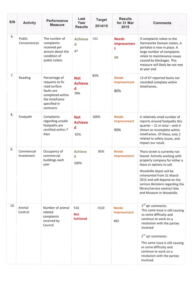 The Mayor made reference to the following matters: · Apologies for not being able to attend the Anzac Day services in the south of the district. · Thanks to councillors for their attendance at the various services held throughout the district. · Thanks to all those involved with arranging community events as part of the First World War Commemorations. · Thanks to the contractors involved for ensuring the tidy appearance of the district’s cemeteries, war memorials, cenotaphs and the associated public places. · Thanks to the Economic Development and Communications Manager and her team for arranging the thought provoking Provincial Matters Rural Conference. · Thanks to the Economic Development and Communications Manager and the Events Coordinator for arranging the successful Long Term Plan Road Trip. · The Eastern Institute of Technology is providing within the district a nineteen weeks building and carpentry training course that is available to youth and those unemployed seeking such skills to create employment opportunities. |