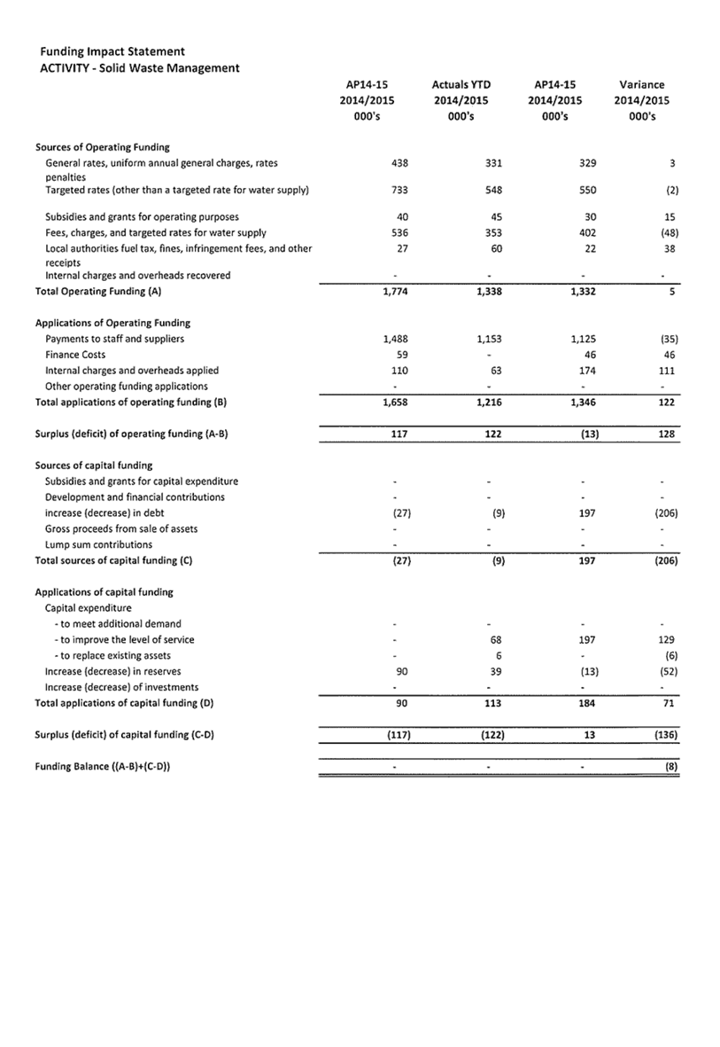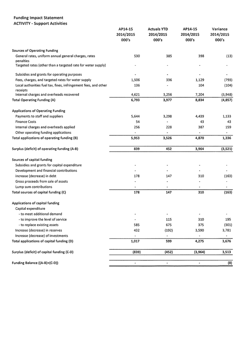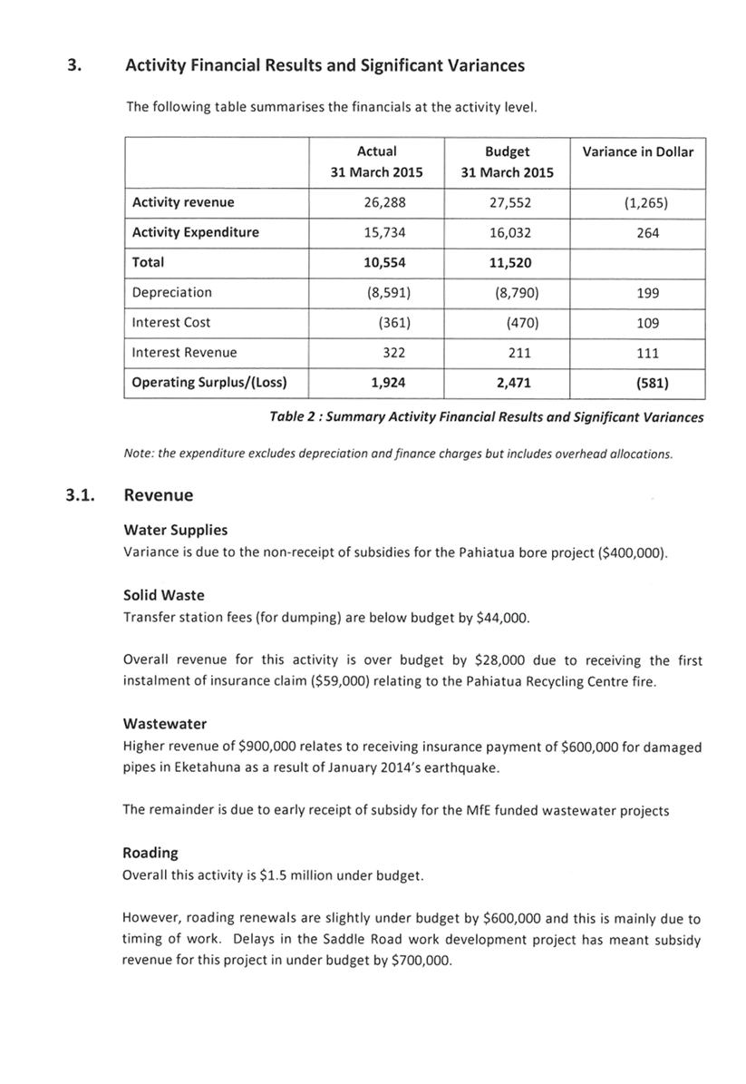 3. Summary of Activity Financial Results and Variances
