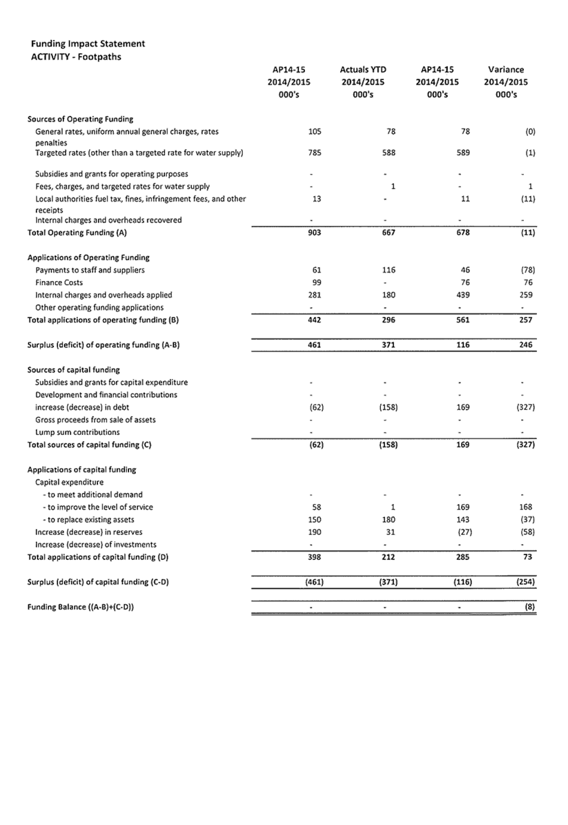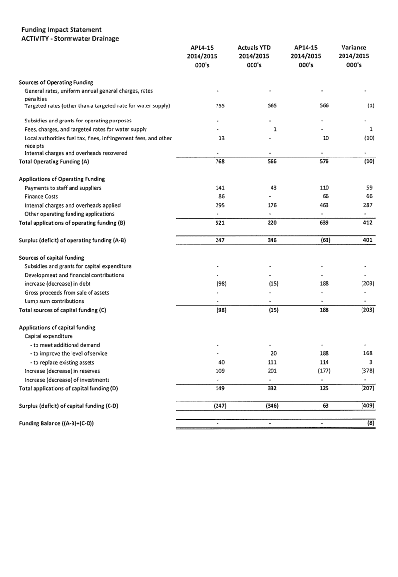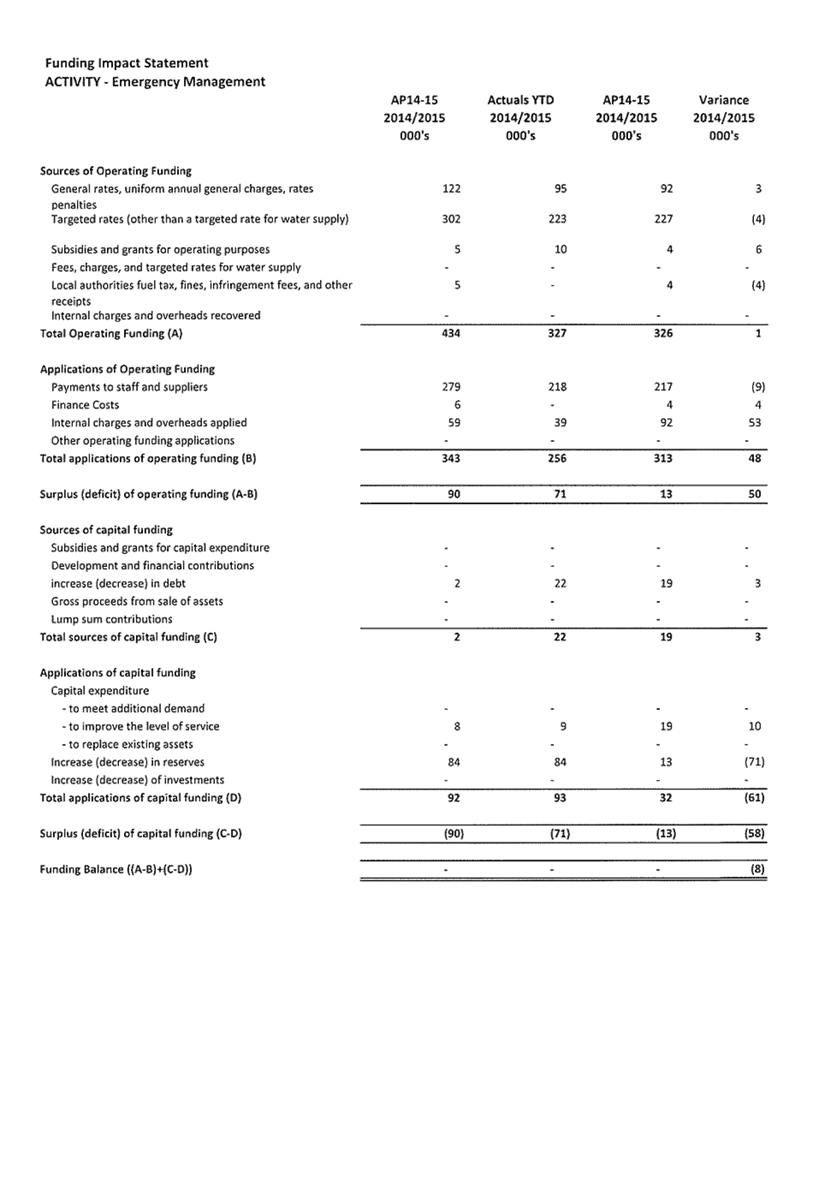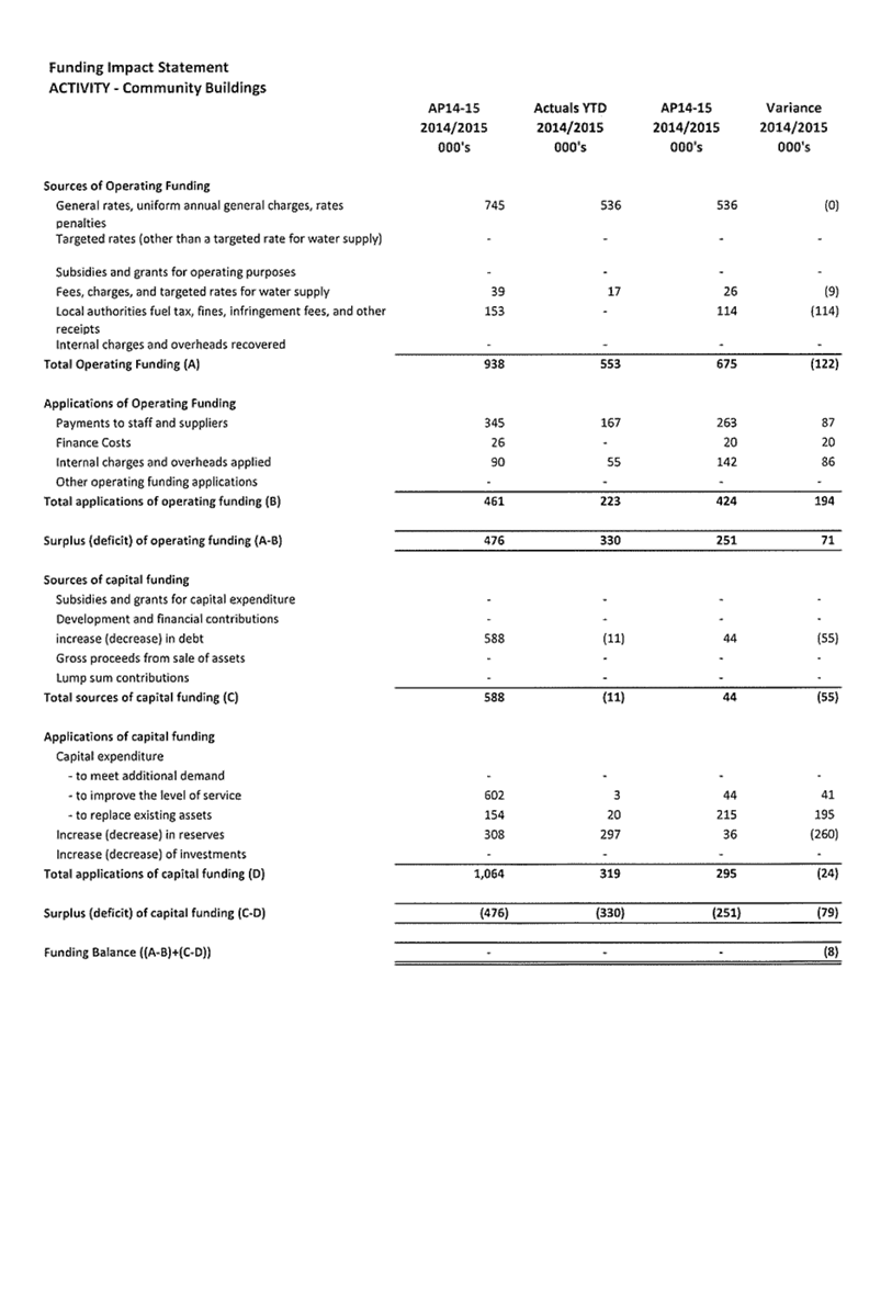 3. Summary of Activity Financial Results and Variances