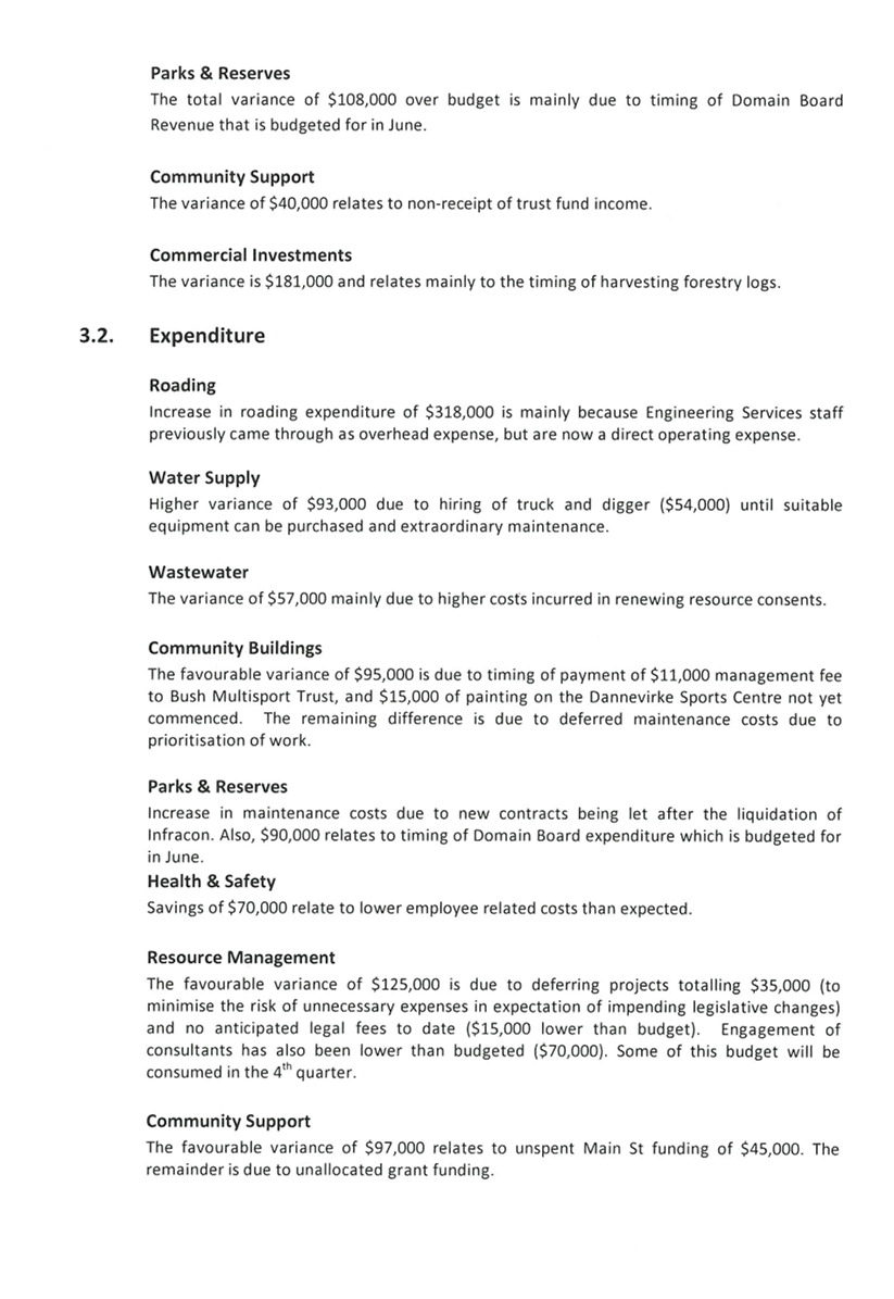 · Continued support is being provided to the Dannevirke Multisport Complex Committee (DMC) through attendance at committee meetings. The group is currently planning a community consultation meeting.