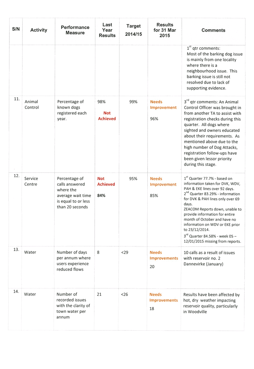 4. Summary of Service Performance Results