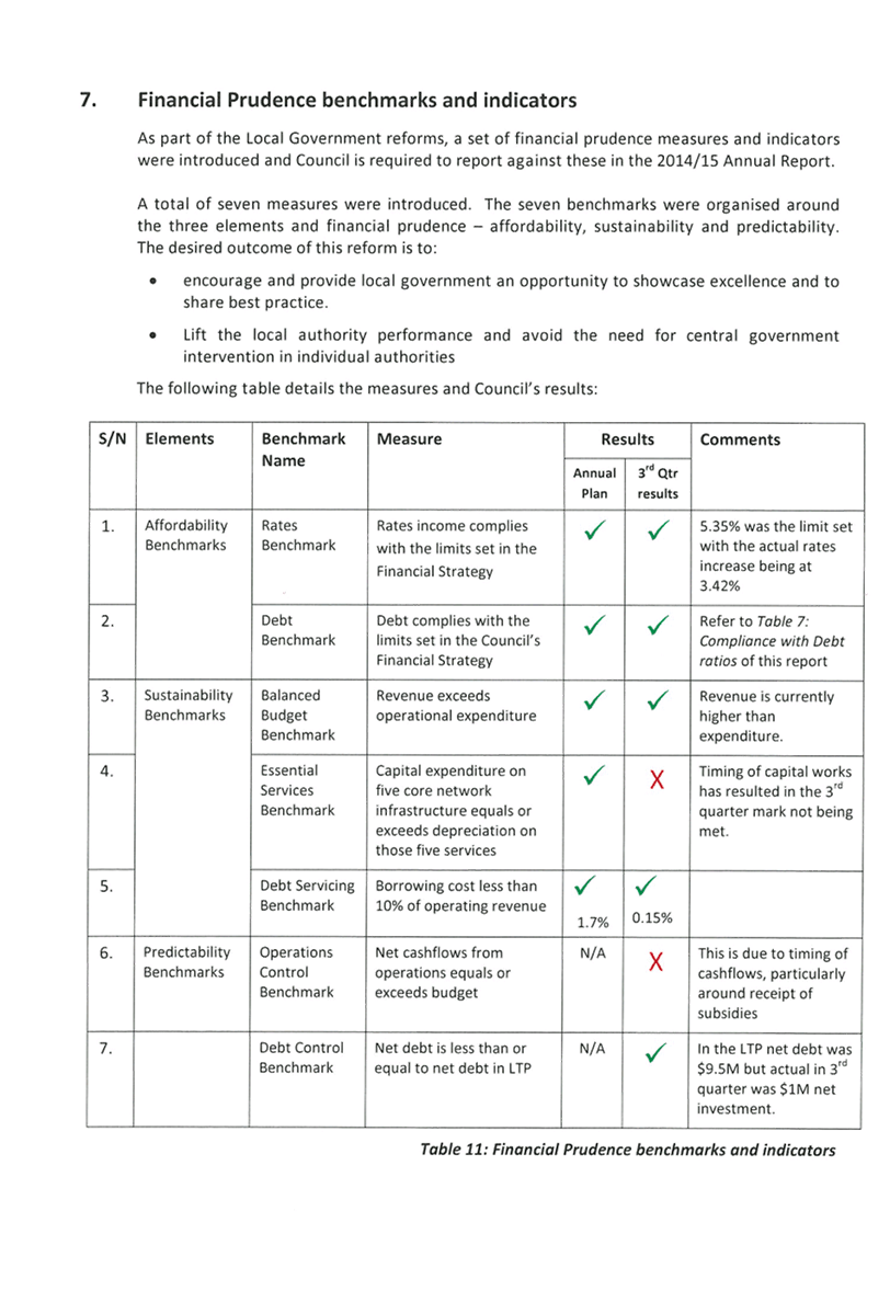 7. Financial Prudence Benchmark and Indicators