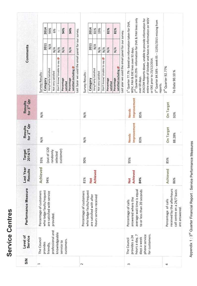 Appendix 4 : Service Performance Measures