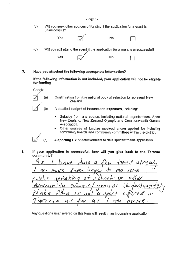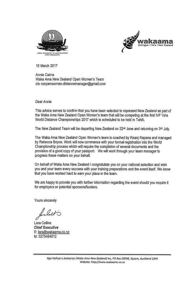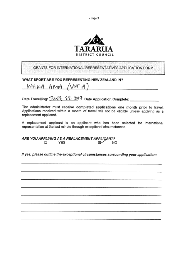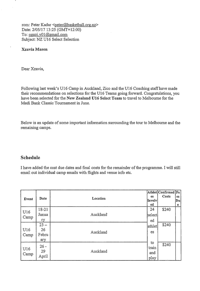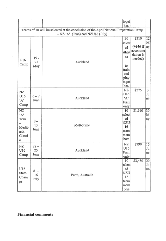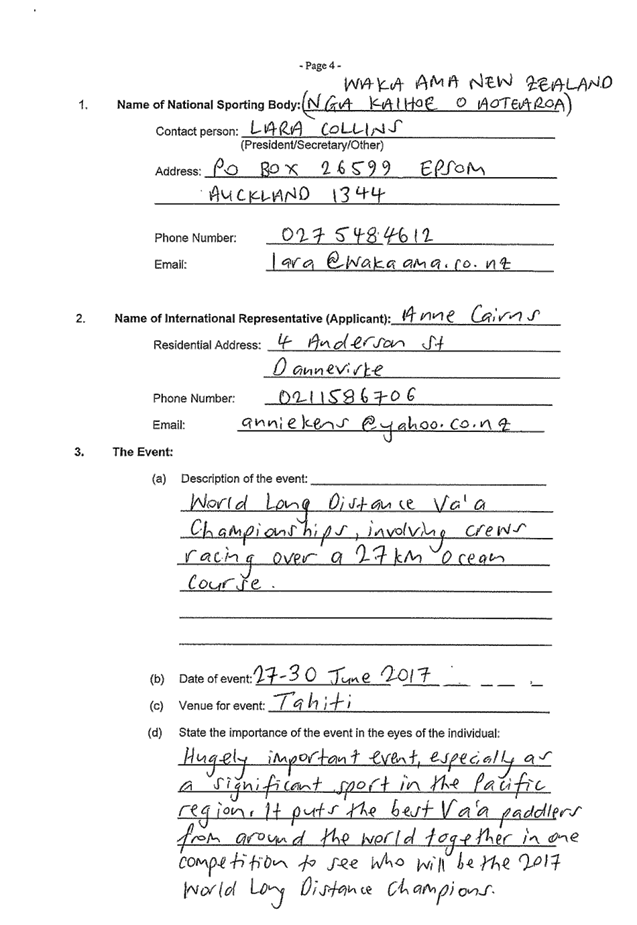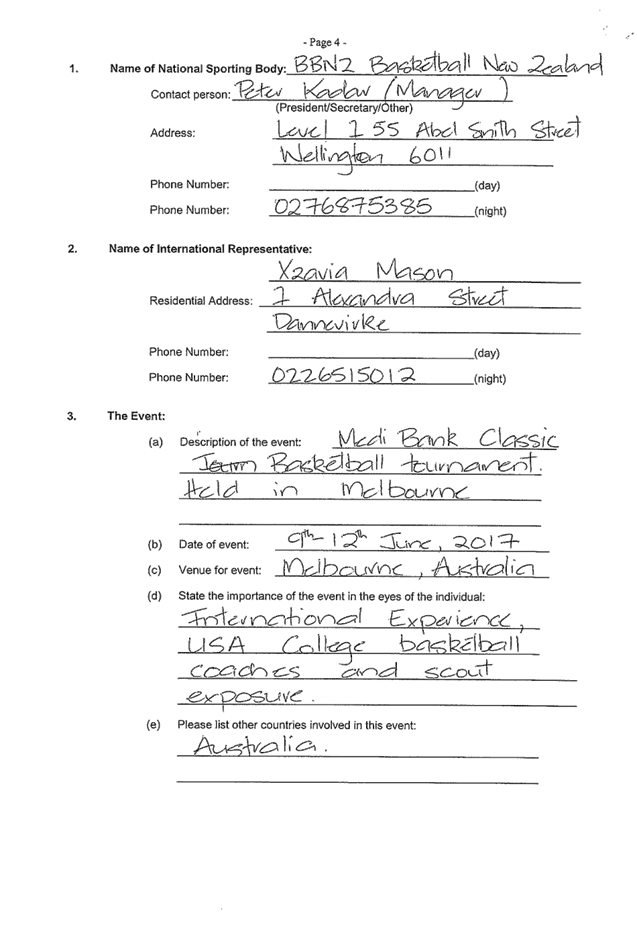 Applications have been received from Xzavia Mason and Anne Cairns seeking financial assistance towards their costs to represent New Zealand at international events.