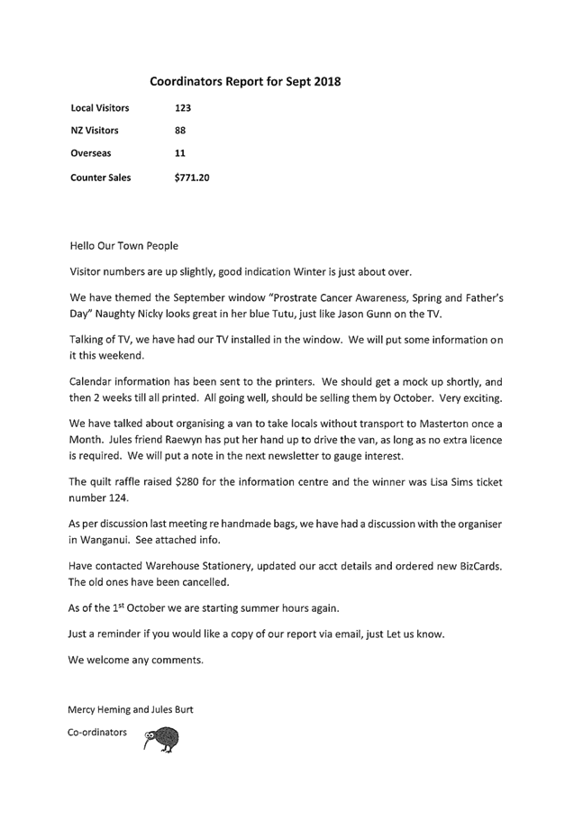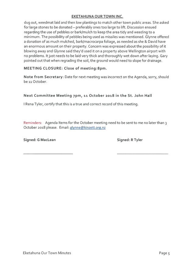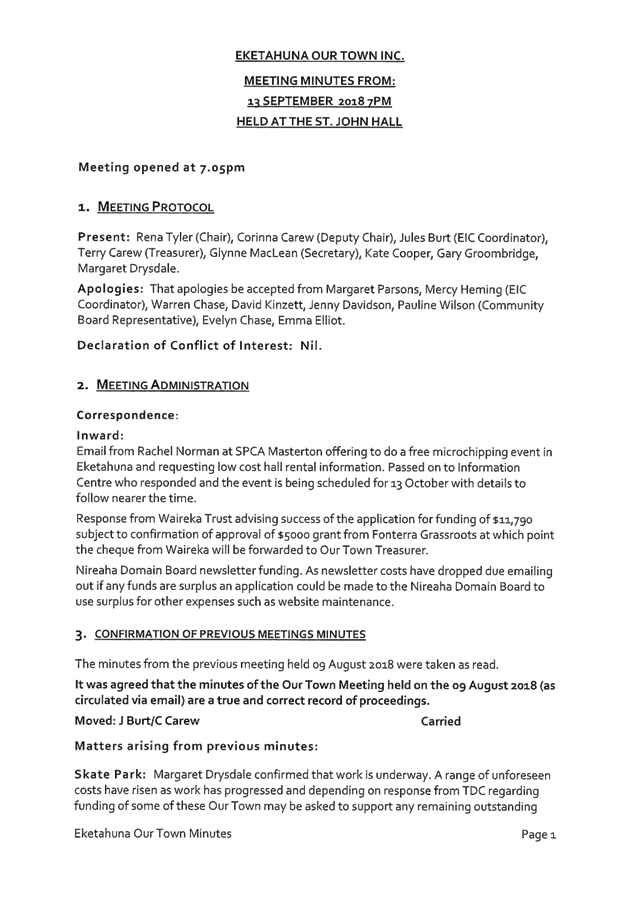 (b) Eketahuna Our Town Incorporated Re: 13 September 2018 Committee meeting minutes