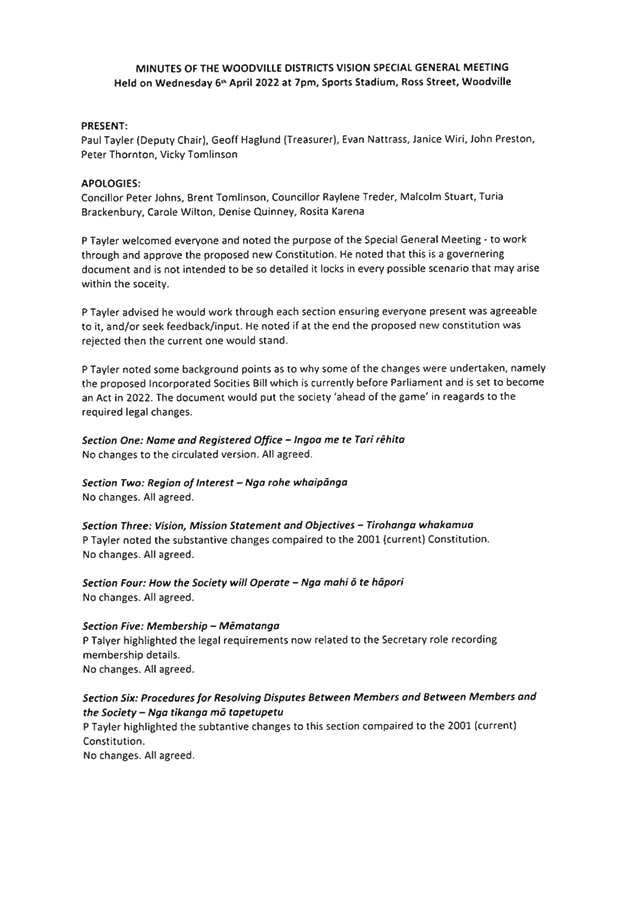 That the report of the Woodville Districts’ Vision special general meeting held on 6 April 2022 (as circulated) be received.