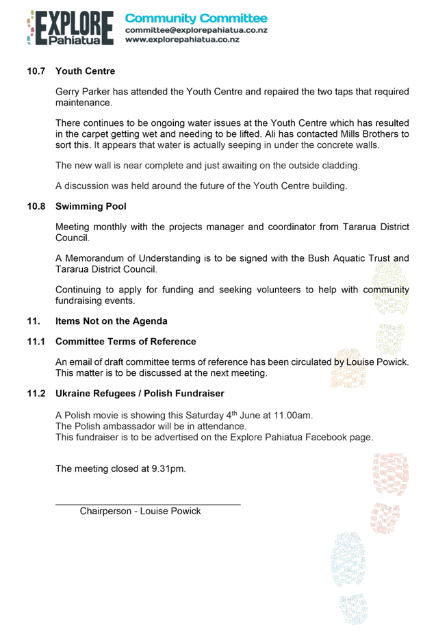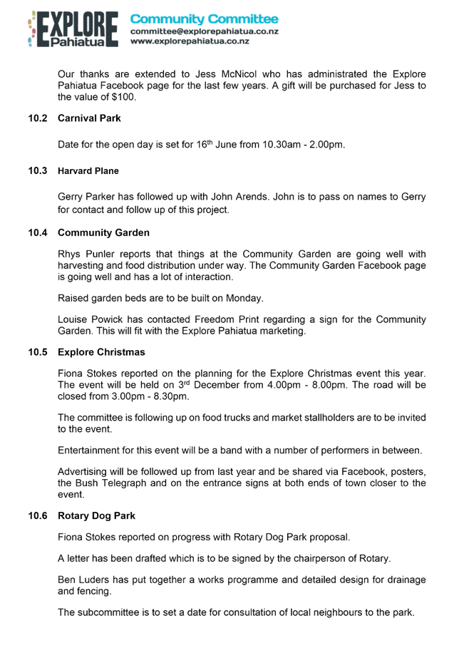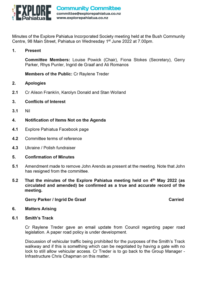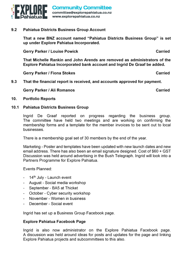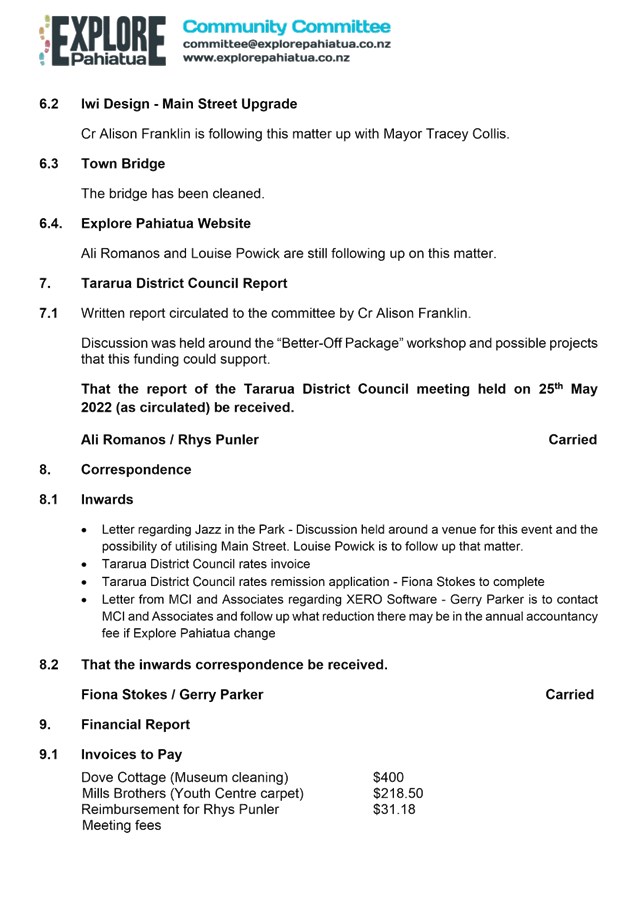 That the report of the Explore Pahiatua meeting held on 1 June 2022 (as circulated) be received.
